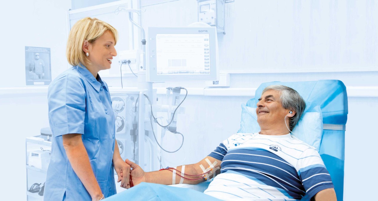 Die Behandlung erfolgt in einem Dialysezentrum. Das medizinische Personal bereitet die Behandlung vor, führt sie durch und überwacht sie.