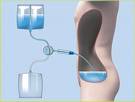Die Peritonealdialyse (PD) hat ihren Namen vom sogenannten Peritoneum (=Bauchfell). Dabei handelt es sich um ein dünnes, samtiges Gewebe, das die Bauchhöhle und die inneren Organe auskleidet. Es ist von Natur aus im Körper eines jeden Menschen vorhanden. Bei dieser Form der Dialyse wird das Peritoneum als natürlicher Filter genutzt, um die Nierenfunktion zu ersetzen. Dazu wird eine frische Dialyselösung in den Bauchraum eingebracht. Je nach ärztlicher Verordnung verbleibt es dort für einige Stunden und wird ersetzt, sobald die Giftstoffe und das überschüssige Körperwasser absorbiert wurden.
