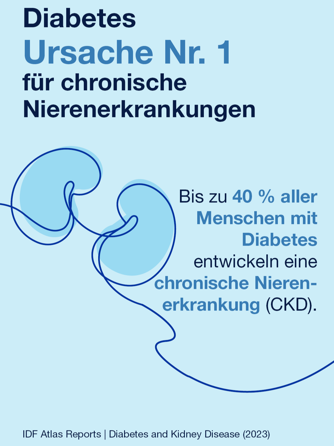Mit der Zeit kann diese stille Belastung zu einer chronischen Nierenerkrankung (CKD) und schließlich zu chronischem Nierenversagen (ESKD) führen. Dies sind Erkrankungen, die Wohlbefinden und Lebensqualität beeinträchtigen. Unbehandelt kann Diabetes außerdem zu anderen schwerwiegenden Komplikationen wie Herzerkrankungen und Sehverlust führen.